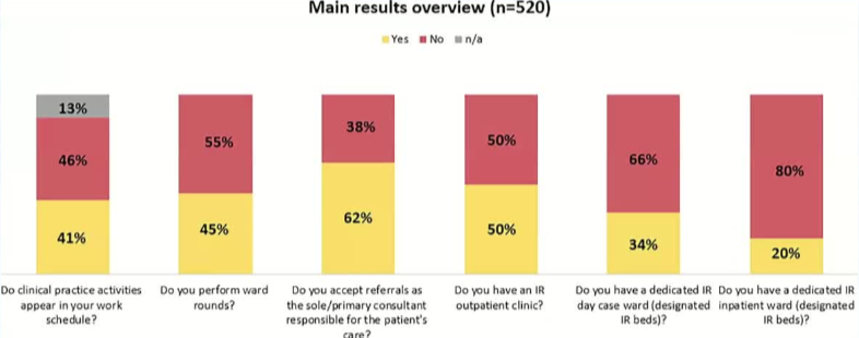以下基于欧洲心血管和介入放射学会(Cirse)发布的 《Clinical Practice in IR Survey 2024》 核心内容整理,该报告汇总了全球介入放射科医师的临床实践现状与趋势数据。关键发现如下: