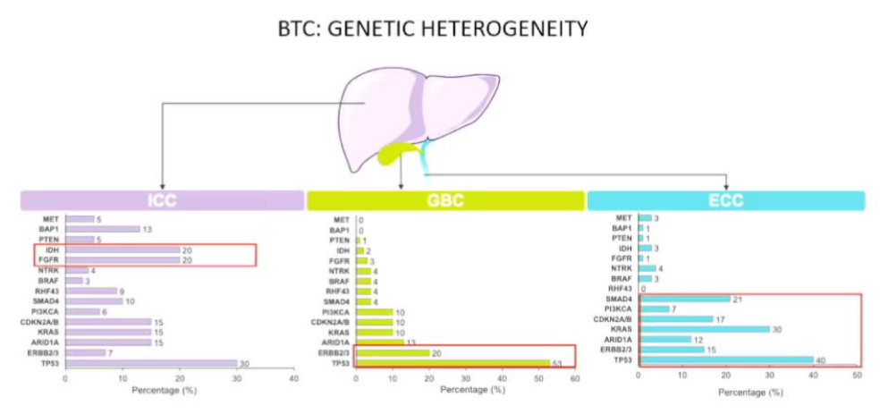 | ERBB2/3 mutation | 0–7.4% | 多见于胆囊癌或肝外胆管癌;部分有HER2靶向机会(如Zanidatamab) |