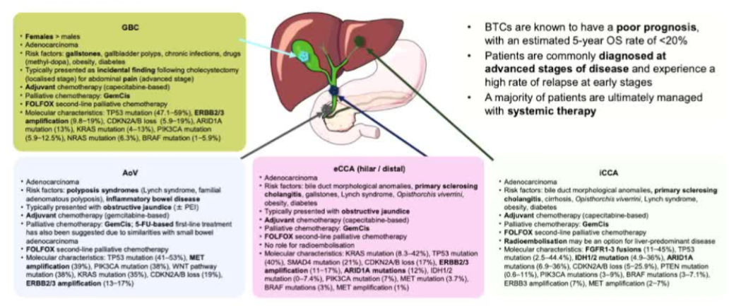 你提供的这段笔记逻辑清晰,按**临床流行病学(危险因素) → 分层治疗(辅助、晚期、局部) → 伴随诊断(基因突变)**进行书写,基本上是现代肿瘤科针对胆道癌的完整诊疗思路。