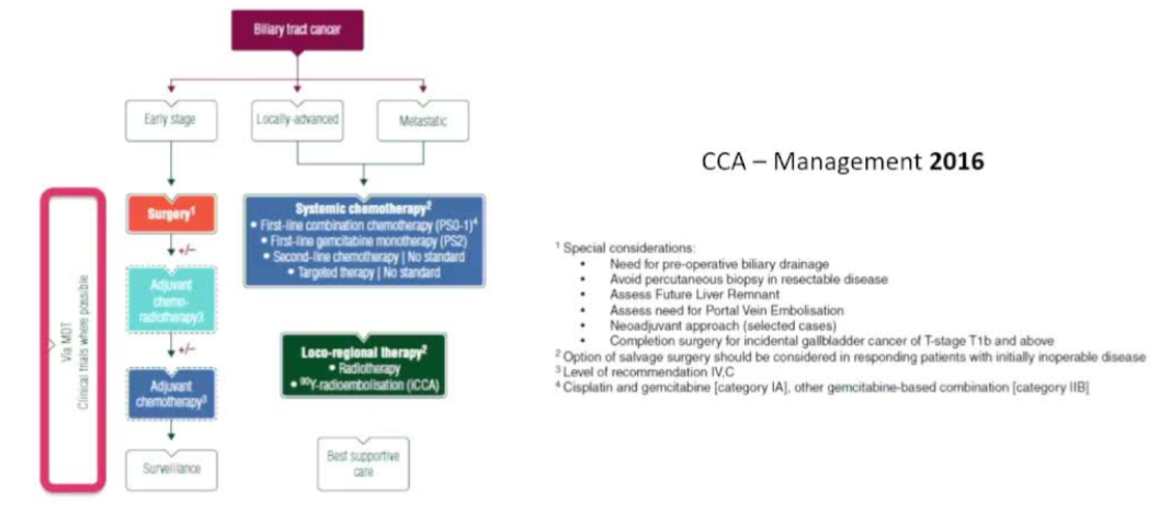 | Pallative chemotherapy GemCis | 姑息化疗:吉西他滨 + 顺铂(GemCis)——ABC-02研究确立的一线标准方案 |
