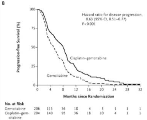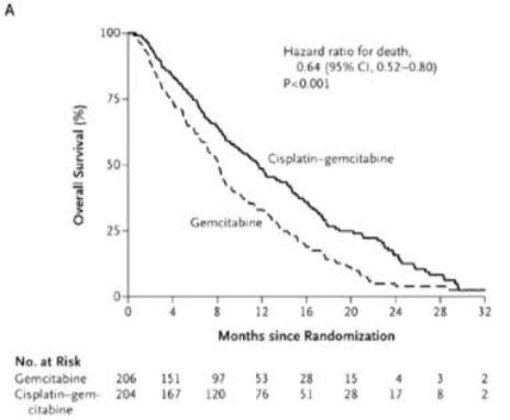 ABC-02试验比较了“CisGem联合方案”与“Gem单药方案”的疗效,其结果确立了CisGem作为全球标准治疗的地位 -