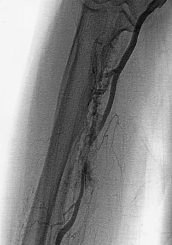 ![]() 桡动脉穿孔 ![]() 鞘管前进 ![]() 最后造影结果