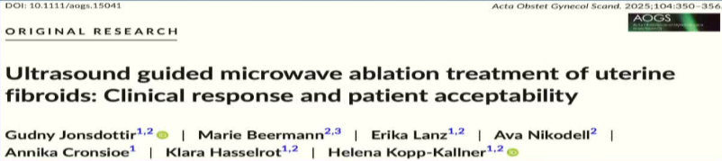 结果:——症状严重程度降低了 37% -↑ 生活质量提高了 74% -+ 月经出血量减少了 38% - 中位大小的肌瘤缩小率(最大的三个)为 64% - 97% 的患者当天即可出院