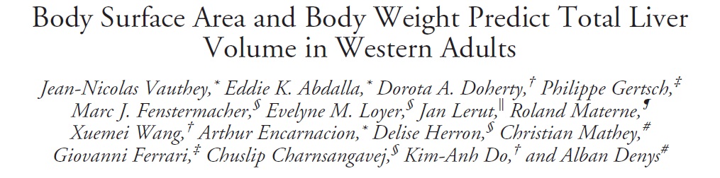 2. Johnson TN, Tucker GT, Tanner MS, Rostami-Hodjegan A. Changes in liver volume from birth to adulthood: a meta-analysis. Liver Transpl. 2005 Dec;11(12):1481-93.