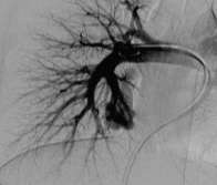 腹腔动脉造影,肝动脉供血劣势,脾动脉供血优势 |