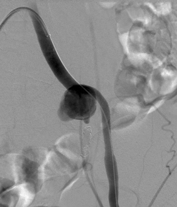 透析瘘的输出静脉出血,由于PTA:覆膜支撑架植入