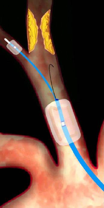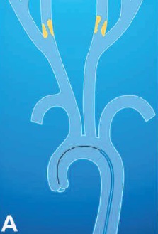 血管造影:(后前位,斜位),若发现狭窄,需要进行颅内循环的评估 支撑架植入前扩张:小直径球囊(low profile balloon catheter) 低剖面(小直径)球囊,直径2~3mm,长度2cm,快速交换球囊导管(monorail balloon),使用小球囊可以减少颈动脉窦反射(Carotid Sinus Reflex)
