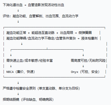 Onyx胶栓塞的核心价值在于其“安全、精准、持久”的特性,尤其适用于常规方法难以处理的复杂、末梢性下消化道出血。