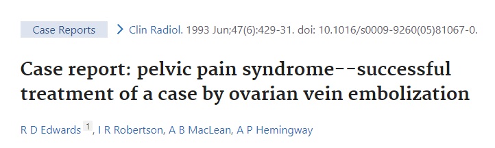 First report: Edwards RD, et al. (1993) Case report: pelvic pain syndrome—successful treatment of a case by ovarian vein embolization. Clin Radiol 47:429-431