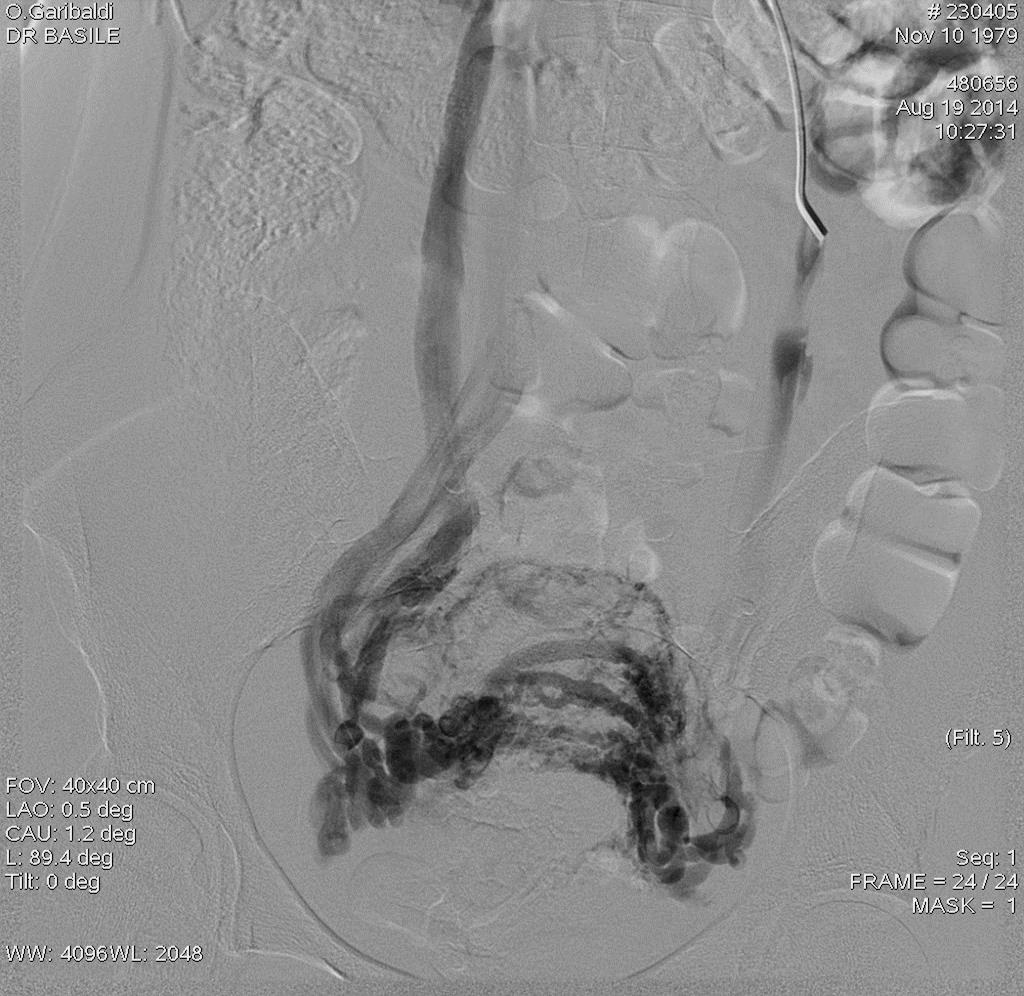 1. High-outflow through the contralateral hypogastric vein. 通过对侧髂内静脉的高血流