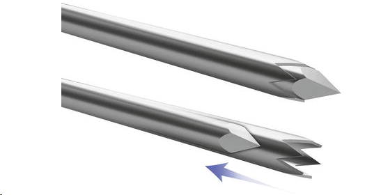 Tru-cut型穿刺针具有带凹槽的中心穿刺针,外周包绕切割针。当穿刺针前进到靶组织后,组织进入凹槽中;当外层切割针快速前进时即可切割下一块半圆性组织。大部分自动化活检装置采用的是tru-cut 类型的穿刺针,置于带有弹簧的手柄上,能够机械性完成组织获取的步骤。这些装置极大地简化了活检过程,且对于操作者达到最优使用的经验要求也更低。