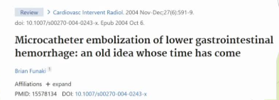 1. 旧瓶装新酒和上消化道出血栓塞不同,下消化道出血是个“旧观念”:早在20世纪70年代初,就有学者尝试用栓塞治疗下消化道出血,但当时没有微导管,使用的导管较粗(5F),无法超选择到出血的末梢血管,尽管有Rosch 1972 和 Bookstein(1974) 改良的凝血块作为栓塞材料,导致肠梗死发生率高达13-33%【Rosch 1972 Bookstein(1974 VP Chuang 1979】。因此,栓塞技术被弃用,转而采用血管加压素灌注(通过导管持续输注药物收缩血管止血)。 微导管的引入,开辟了一个“新时代”:20世纪90年代,微导管(3F,同轴技术)的出现,使介入医生能够将导管超选择到直动脉(vasa recta) 或更末梢的出血点进行精准栓塞。这既阻断出血,又通过侧支循环保留肠壁血供,肠梗死发生率降至接近0%。因此,栓塞重新成为严重下消化道出血的一线血管内治疗方法。在当时微导管的诞生在下消化道出血栓塞被称为"一个时机已到的旧观念” ![]() 2. 患者分层文章将下消化道出血患者分为四类,这与我们之前讨论的“分层处理”逻辑一致: