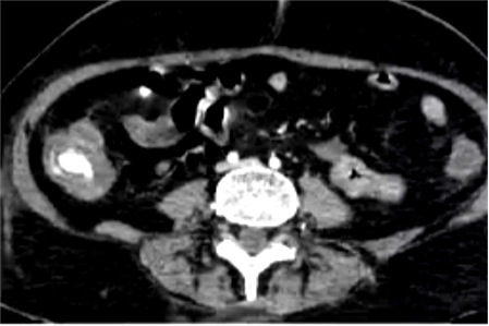 4. 技术要点急性消化道出血,生命体征稳定患者,CTA提示升结肠造影剂外溢