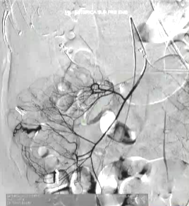 栓塞操作:在五支独立的SMA分支(vasa recta水平)中进行选择性栓塞,使用NBCA。