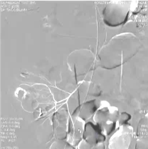 栓塞材料:微弹簧圈、PVA颗粒、明胶海绵等,可联合使用。