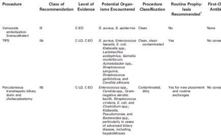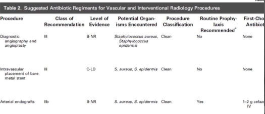 与原指南【Venkatesan, 2010 】的情况一样,IR 文献中缺乏有关预防性使用抗生素的随机对照数据。很多数据来自回顾性研究或从外科数据推断而来。IR 中感染并发症相对较少,使得大规模的随机对照试验难以实施。尽管如此,抗生素仍是患者围手术期管理的重要组成部分,因此操作者必须熟悉最新的临床建议。