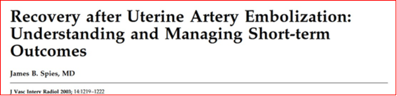 在做子宫动脉栓塞时,栓塞第二根血管就会开始疼。术后第一晚最疼,是因为组织没血了;出院前一两天又会有一个疼的过程,是因为身体在发炎清理坏死组织。这种疼痛是正常的,但需要提前和持续地用止痛药来控制。 ![]() 子宫肌瘤栓塞术后疼痛是否需要重视 Is Pain after UFE a big deal?子宫肌瘤治疗方法 由Ravina 等人1995 提出的子宫动脉栓塞术(UAE)【Ravina 1995】 美国进行了 20 万例子宫切除手术 美国进行了 30,000 例子宫肌瘤切除手术 全球约25,000子宫动脉栓塞 子宫动脉栓塞地区医疗资源未得到充分利用的一个原因在于人们对术后子宫肌层缺血性疼痛的误解。 ![]() 多中心前瞻性单臂临床试验,评估了子宫动脉栓塞术(UAE)治疗子宫肌瘤的耐受性和恢复情况。研究结果显示,大多数患者在UAE后仅需住院一晚,并能在两周内恢复。然而,术后疼痛是一个显著的问题,不仅影响了患者的恢复速度,也是导致住院时间延长的主要原因。尽管总体并发症率相对较低,但其中大部分与疼痛有关。因此,优化疼痛管理和支持措施对于改善UAE患者的恢复体验至关重要。 ![]() ![]() 强调了子宫动脉栓塞术在治疗症状性子宫肌瘤方面的安全性和有效性,并指出术后疼痛管理是影响患者选择的重要因素。作者提出了一系列简单而有效的技术和管理措施,包括血管树修剪、栓塞技术、详细的围手术期管理和骶前腹股沟神经阻滞,这些措施可以显著减少术后疼痛,改善患者体验,并促进更快的恢复。核心观点在于,通过优化疼痛管理,可以使患者在UAE后获得更好的恢复效果和更少的不适。 子宫动脉栓塞术为自己赢得了一项“疼苦手术”的名声 Uterine embolization gained the reputation as a painful procedure ![]() 这导致妇科手术医生“告诫"患者远离子宫动脉栓塞 Has led some Gyn to steer patients away UFE
