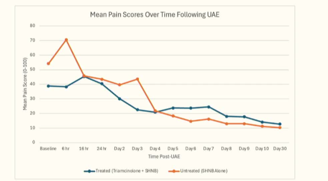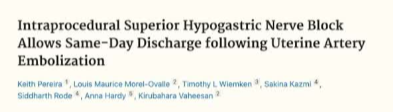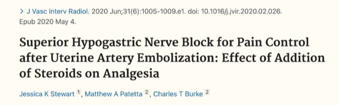 一项前瞻性随机对照试验的结:评估在子宫动脉栓塞术后,将类固醇加入上腹下神经(骶丛神经)阻滞中以增强疼痛控制的效果