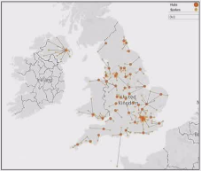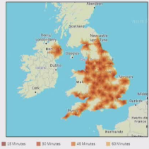 网络覆盖不均:32%的网络存在至少一家辐条医院距中心超过1小时车程。