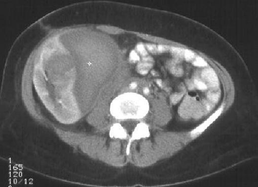 假性动脉瘤 肾包膜下血肿通常与损伤的动脉交通。动脉瘤与肾盂肾盏交通导致间歇性血尿