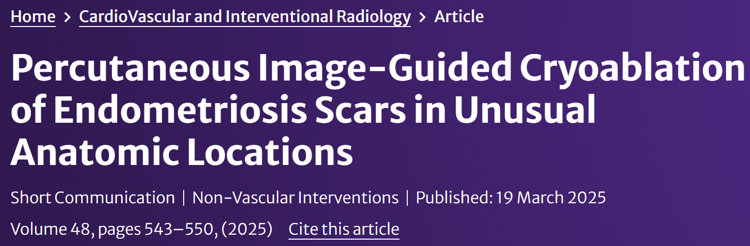 - 有效性与安全性:经皮冷冻消融治疗不常见解剖位置的疼痛性子宫内膜异位症病灶似乎是高度有效且安全的。