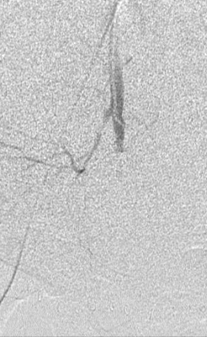 所有年龄超过 40 岁的患者, 卵巢受损 14%-43% 研究中闭经发生率(15%)与单纯UAE报告相似,可能与患者年龄(≥45岁)及卵巢储备自然下降有关。 ![]() 50岁,长期因子宫肌瘤导致月经出血过多,痛经和贫血。 子宫肌瘤栓塞术前,显示双侧子宫动脉发育不全,子宫肌瘤双侧卵巢动脉。 经皮股动脉穿刺双侧卵巢动脉栓塞,先500μm-700μm emboSphere 微球 术后4周,和6月的中短期随访,月经正常,子宫容积减少,贫血纠正,无卵巢功能衰竭。但看起来非灌注容积较少。 术后9月,由于子宫肌瘤持续存在,患者自己希望绝经,行全子宫和双侧卵巢切除术 术后病理,子宫内可见栓塞微粒伴有坏死,卵巢内也见栓塞微粒,但卵巢功能未受损。