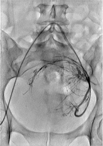 栓塞前选择性子宫动脉血管造影 - 子宫 - 卵巢吻合