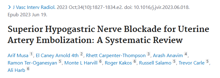 本文是一篇关于腹下神经阻滞(Superior Hypogastric Nerve Block, SHNB)在子宫动脉栓塞术(Uterine Artery Embolization, UAE)后镇痛效果的系统性文献综述。文章指出,尽管SHNB有潜力减少UAE后的疼痛,但现有的研究由于设计、样本量或结果冲突而受到限制。因此,作者进行了系统的文献回顾,以评估SHNB的效果。