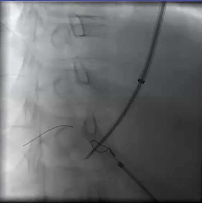 通过经皮经脾路径具有显著优势,能够使用 4Fr 细导管和导丝进行逆向再通操作,以 10 毫米的圈套器作为经颈静脉穿刺目标,通过Avitene 完成经颈静脉门静脉穿刺。