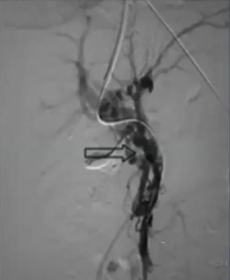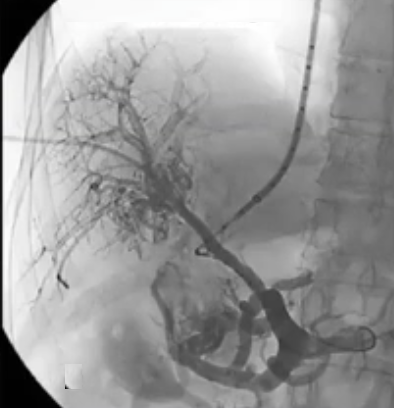 在这种情况下,“Salem ”技术是最佳选择,即进行脾脏穿刺,疏通血栓,放置圈套器,并引导经颈静脉肝内门体分流术(TIPS)操作。