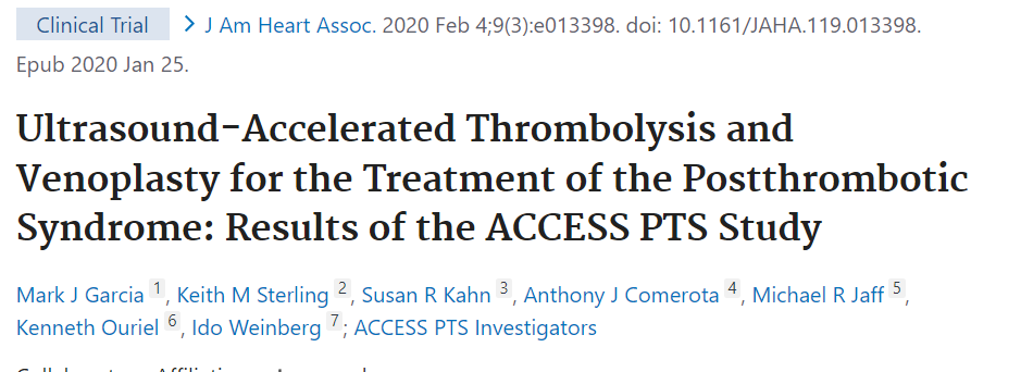 ACCESS PTS研究旨在评估结合经皮腔内血管成形术(PTV)和超声加速溶栓(USAT)治疗PTS的有效性。
