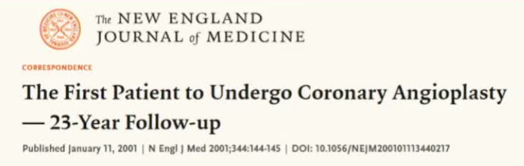 在您的介入放射学诊疗实践中,您估计有多少比例的诊疗操作会涉及设备或药物的超说明书使用情况? 第一例接受冠状动脉血管成形术的患者——23年随访 www.nejm.org