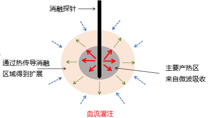 在消融前,需要通过超声、CT扫描或MRI等影像引导技术对肿瘤进行定位,以便放置探针并进行微波靶向。一旦找到肿瘤,就需要通过皮肤上的小切口将一根小探针(也称为天线或应用器)直接插入肿瘤组织中。探针在影像引导下定位在肿瘤内。一种冷却剂(二氧化碳或液体)通过针头输送,以防止皮肤烧伤。在图像引导的消融过程中,每周期微波作用于组织可产生约1.6厘米的凝固性坏死区域,持续时间约为120秒,功率为60瓦。在治疗过程中达到的温度可导致凝固性坏死,有效地杀死肿瘤细胞。消融的程度取决于微波能量的持续时间和强度,以及肿瘤的大小和位置等因素。