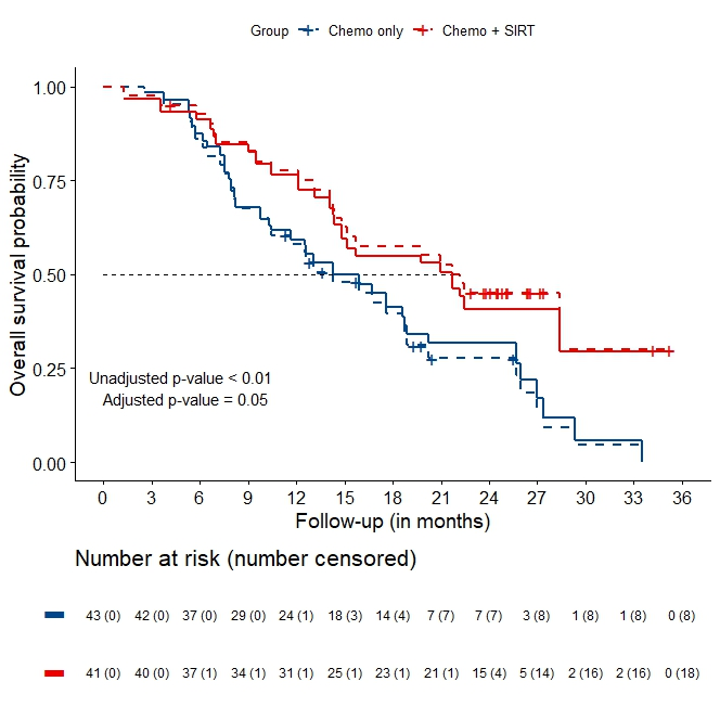在多变量分析中,作为降期治疗的SIRT显示出显著的好处(危险比0.34,95% CI 0.14-0.84;p = 0.019)。