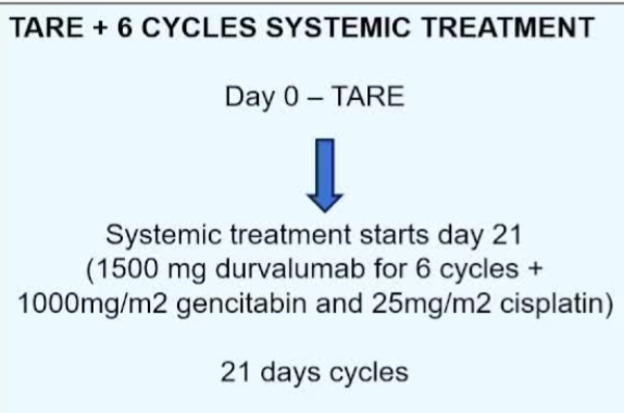 II 期临床试验 、 不可切除的胆管癌; 联合使用吉西他滨和度伐利尤单抗的放射栓塞治疗 ![]()