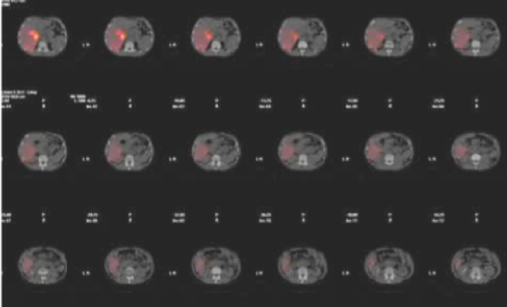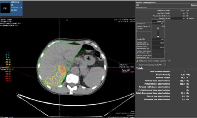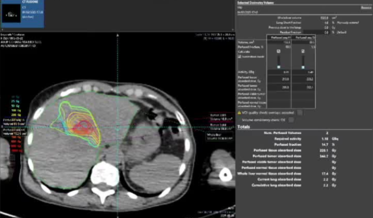 灌注的范围可能是整个肝脏,也可能是肝脏的一部分。经证实,这种疗法在一线化疗后是安全且有效的。 在靶向不准确(如[99mTc]TcMAA SPECT/CT 检查)以及肿瘤负荷过低(< 10%)的情况下,需要谨慎处理,因为这可能导致疗效低下和/或毒性过高。