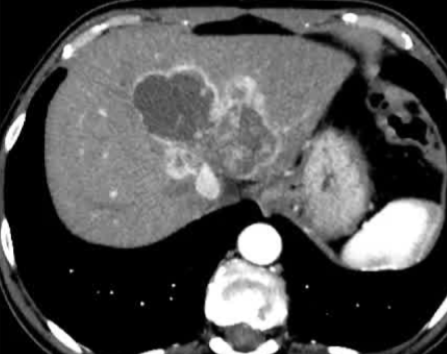 · 单中心、样本量小; 83 岁的女性,体重超标 40 毫米单发 ICC(S7-S8) 中肝静脉和右肝静脉浸润性,活检:非酒精性脂肪性肝炎(慢性肝病),马斯氏(MaS)病(30%)