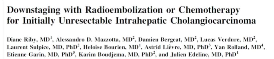 上文是一篇回顾性研究,旨在比较接受初始手术或在降期治疗后进行手术的肝内胆管癌(ICC)患者的预后。研究对象为1997年1月至2017年11月期间单中心数据库中的所有连续ICC患者。患者被分为两组:一组是直接进行手术,另一组是在化疗或选择性内部放射治疗(SIRT)联合化疗降期治疗后再进行手术。