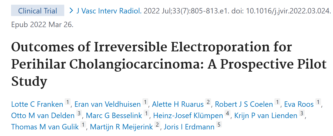本文是一篇关于不可逆电穿孔(Irreversible Electroporation, IRE)治疗肝门部胆管癌(Perihilar Cholangiocarcinoma, PHC)的前瞻性试点研究的报告。研究旨在评估IRE在局部晚期、不可切除的PHC患者中的安全性和有效性,特别是在血管广泛受累或N2淋巴结转移的情况下。