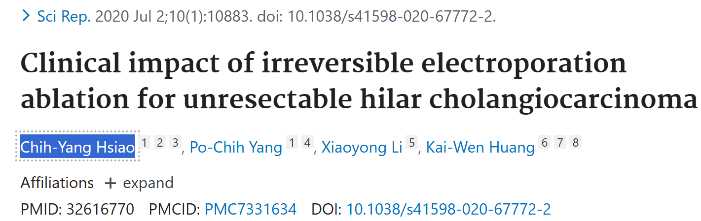 :尽管大多数患者胆道仍存在狭窄,但IRE消融对于涉及重要结构的无法切除的肝门部胆管癌来说是一种安全可行的局部肿瘤控制方法,并且能够有效延长生存期。