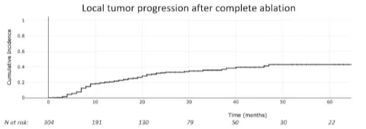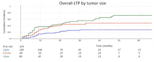 3 年局部肿瘤进展(LTP)率率:36%(肿瘤直径小于 2 厘米者为 27%)