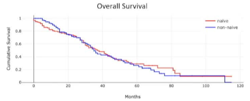 在没有接受治疗(naive patients)患者和接受过治疗(non naive patients)患者整体生存率相似