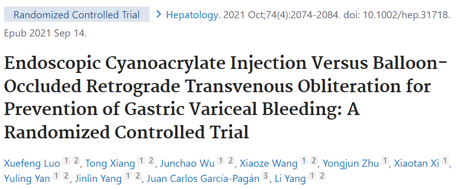 这篇发表于《Hepatology》的随机对照试验,直接比较了内镜下氰基丙烯酸酯注射与球囊阻断逆行经静脉闭塞术(BRTO)在预防孤立性胃静脉曲张再出血中的疗效。结合你之前对NNT质量证据的关注,我们可以用NNT作为核心工具,来评估这项研究的临床价值。