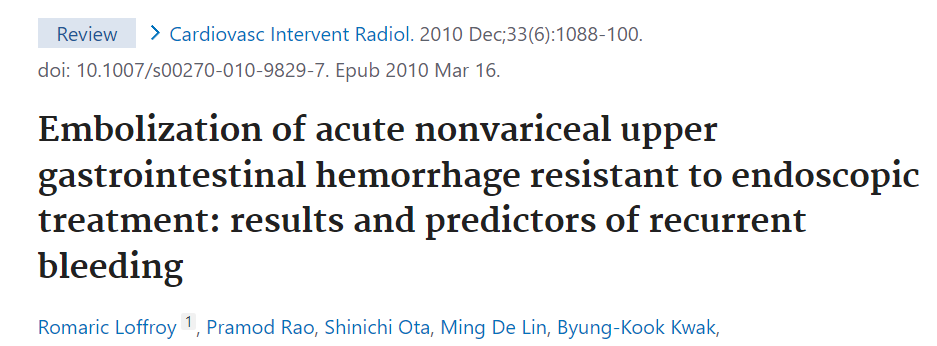 然而,影响临床结果的因素,尤其是早期再出血的预测因素,尚不明确,且很少有研究涉及这一问题。本栏目将试图明确栓塞疗法在内镜止血无效的急性非静脉曲张性上消化道出血中的作用,并总结有关血管造影和栓塞失败预测因素的数据。