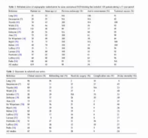各研究技术成功率从62%(Encarnacion 1992)到100%(Toyoda 1996、De Wispelaere 2002、Holme 2006)