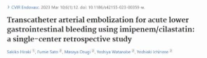 ![]() 本文是一篇关于经导管动脉栓塞术(TAE)用于急性下消化道出血(LGIB)治疗的研究论文。研究背景是,在内镜方法无法实施或无效的情况下,TAE是一种标准治疗方法。该研究旨在评估一种新的栓塞剂——亚胺培南/西司他丁(IPM/CS)混合物在TAE中的临床效果。 主要观点