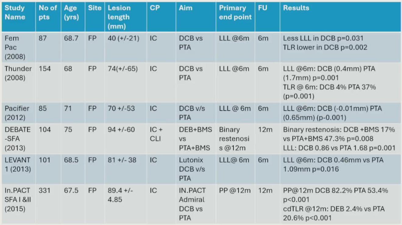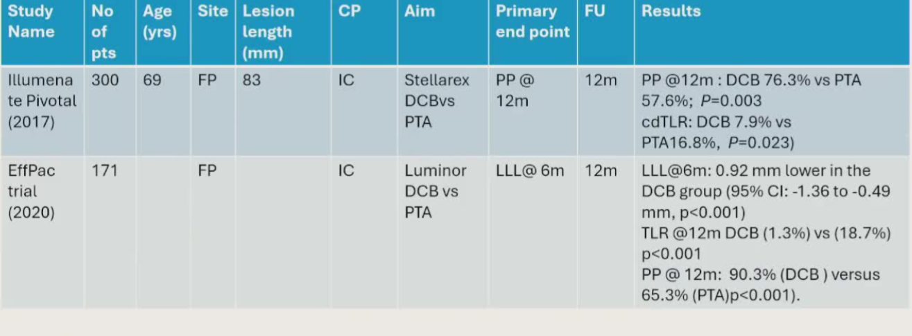 :在股腘动脉疾病患者中,与普通球囊血管成形术相比,DCB血管成形术可降低一年内的重复血运重建风险,且不同DCB平台的临床疗效梯度取决于紫杉醇密度。