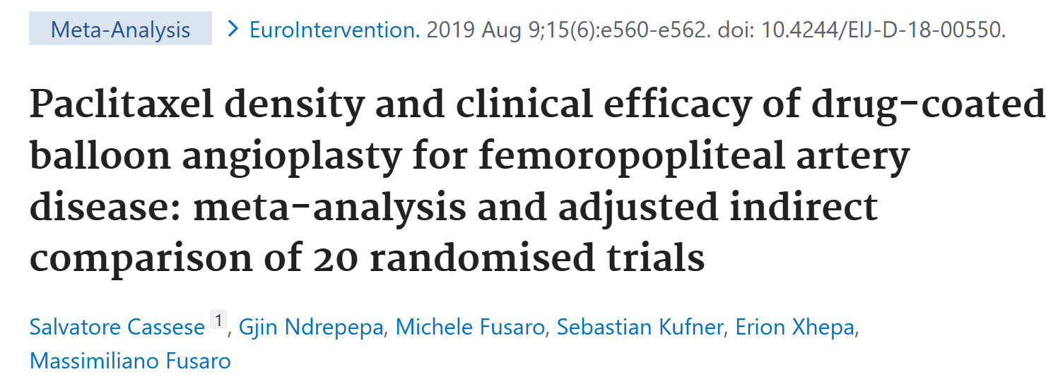 :这是迄今为止最大的一项比较DCB和平板球囊血管成形术治疗股腘动脉疾病的荟萃分析,也是首次对按紫杉醇密度分组的DCB平台进行间接比较的研究。
