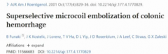 肠梗塞[5] :9%。 再出血 上消化道出血栓塞后的再出血率为27% [1-3]。而外科术后消化道出血的再发生率也是27%。 意外栓塞 1. Ripoll C, Banares R, Beceiro I, et al. Comparison of transcatheter arterialembolisation and surgery for treatment of bleed...