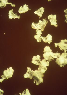 非球形PVA 商品化的PVA既可以是干燥下的,也可以是溶液的 镜下这些颗粒是不规则形状的 干燥的PVA使用时稀释成悬浊液状态,稀释多少取决于栓塞的目的和靶血管的血流状态,以消融(组织的完全坏死)为目的和血流速度较慢的靶血管适当地增加稀释的程度,调节悬
